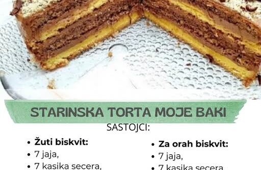 Starinska torta moje bake sa čokoladom i orah biskvitom je zaista fantastična poslastica.Ovaj recept čuvam već dugo vremena, pa sam odlučila da ga podijelim sa vama.Nadam se da će vam se dopasti koliko je i meni.U pitanju je torta sa kojom apsolutno nema kiksa.
