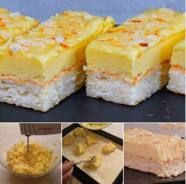 Umutite belanca sa šećerom, pa dodajte kokos i badem i promešajte.Sipajte u kalup obložen pek papirom, poravnajte i pecite na 180°C oko 25 minuta.