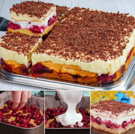 Višnje ovom kolaču daju svežinu, dok beze krcka u ustima, a kremasti fil se topi. Umesto višanja možete da ubacite maline ili kupine, kako bi dale taj kiselkasti ukus. Kada jednom probate, nećete moći da se zaustavite koliko je dobro.