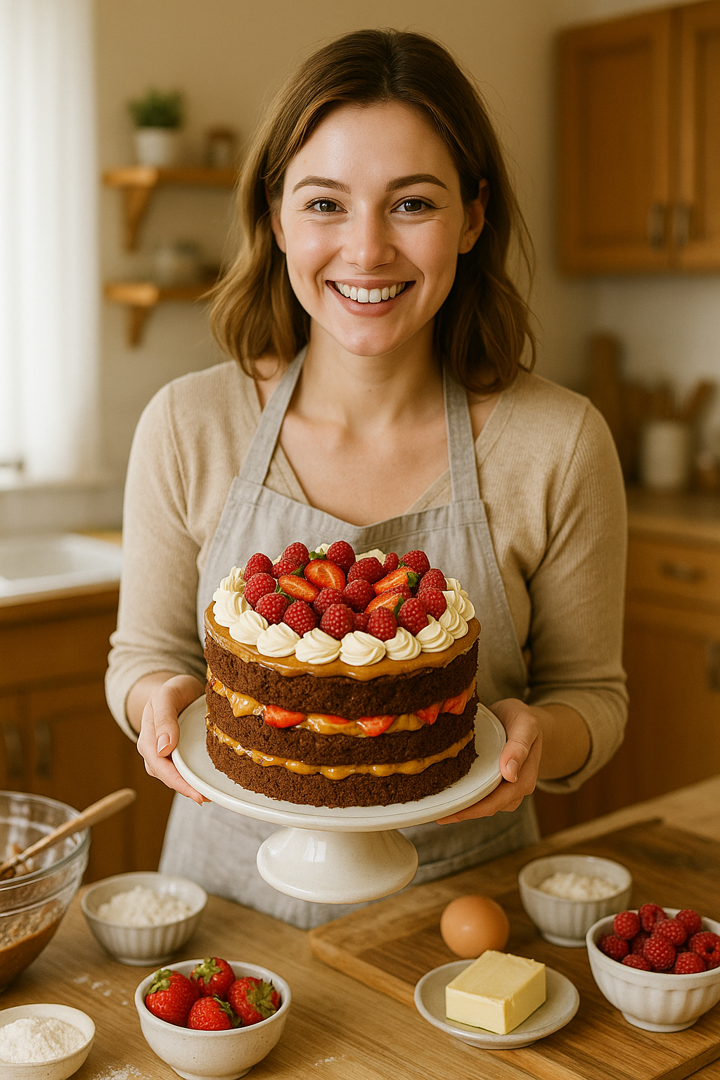 Sati su prolazili, a kuhinja je mirisala na čokoladu i karamel. Jelena je improvizovala — sloj po sloj, boje, mirisi i teksture pretvarali su se u nešto magično.