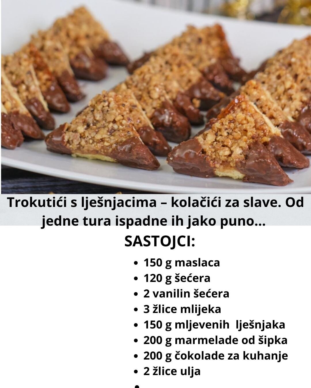 Savršeni kolačići za Božić i proslave. Od jedne ture ispadne ih jako puno. Trokutići s lješnjacima.