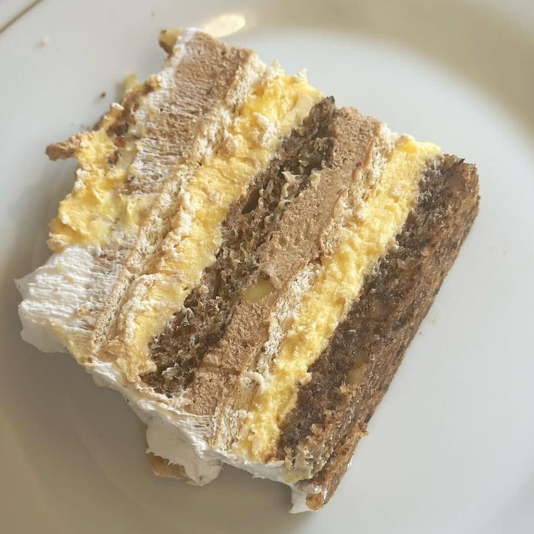 Sada dolazi najzabavniji deo – slaganje torte. Na tacnu stavite prvu koru (onu od belanaca) i premažite je sa žutim filom. Zatim, prethodno umačene kekse složite na fil, i preko njih stavite braon fil sa čokoladom. Na kraju, stavite drugu koru, premažite sa preostalim žutim filom, ponovo složite keks i završite sa preostalim braon filom. Ostavite tortu da se ohladi u frižideru, najbolje preko noći, kako bi se svi slojevi dobro povezali i ohladili.