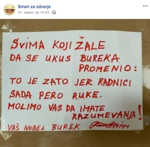 Home Zdravlje Vlasnik buregdžinice objasnio je zašto se ukus njegovih proizvoda promijenio, SLIKA JE... Zdravlje Vlasnik buregdžinice objasnio je zašto se ukus njegovih proizvoda promijenio, SLIKA JE HIT U REGIONU By joci - 26 veljače, 2026 94 FacebookTwitterPinterestWhatsApp Oglasi - Advertisement Ko ne bi imao razumijevanja za ovakvo objašnjenje? Oglasi - Advertisement RELATED ARTICLESMORE FROM AUTHOR Evo kako siječete ruže u proljeće: Morat ćete OVO uraditi u proljeće, procvjetaće kao nikada prije! 4 UZROKA koji mogu uzrokovati demenciju i Alzheimerovu bolest. Više je uopće ne zalijevam: PROBALA sam ovaj čudan trik da presadim orhideju i nakon dvije godine je ovako procvjetala! Posljednje objavljenoHoroskopBIK – NIŠTA NEĆE BITI ISTO: Maj vam donosi niz događaja koji ostavljaju snažan utisak!joci - 30 travnja, 2026HoroskopVODOLIJA – NIŠTA NEĆE BITI ISTO: Maj vam donosi niz događaja koji ostavljaju snažan utisak!joci - 30 travnja, 2026HoroskopVAGA – NIŠTA NEĆE BITI ISTO: Maj vam donosi niz događaja koji ostavljaju snažan utisak!joci - 30 travnja, 2026HoroskopMesec u Vagi pokreće žestoki udar sudbine: 3 znaka dobijaju šansu koja se jednom pruža u životujoci - 30 travnja, 2026HoroskopZVEZDE NAJAVLJUJU: Ova tri znaka čeka LUDO ZALJUBLJIVANJE u maju – saznajte da li ste među njimajoci - 30 travnja, 2026