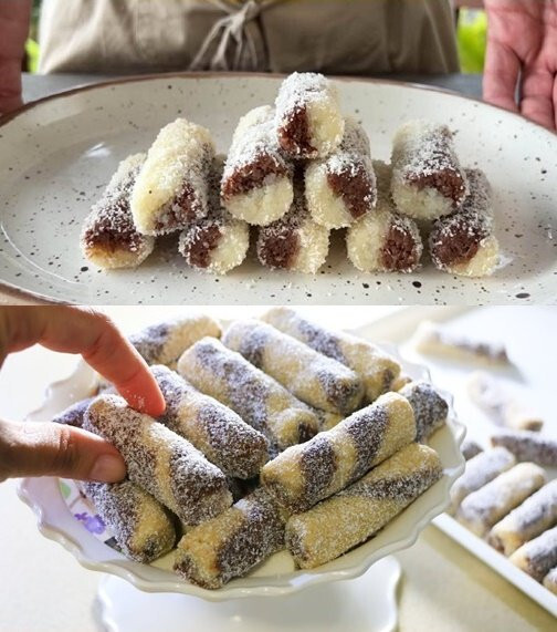 Pomiješajte kokos sa kondenziranim mlijekom, pa smjesu podijelite na dva dijela, jedan od 30%, a drugi od 70%. U manji dio dodajte kakao i dobro promiješajte. Veći bijeli dio oblikujte u kvadrat pa unutra stavite razvaljanu crnu smjesu i čvrsto zarolajte. Uvjerite se da je dobro pričvršćeno i ostavite u hladnjaku 3 do 4 sata. Po želji prije posluživanja uvaljajte u kokos.