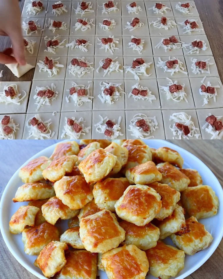 Uzmite polovicu okruglog tijesta i na vrh stavite krišku sira zajedno s nekoliko kriški kobasice. Preklopite tijesto preko nadjeva, stvarajući oblik polumjeseca. Prstima ili vilicom čvrsto pritisnite rubove kako biste bili sigurni da su zapečaćeni.