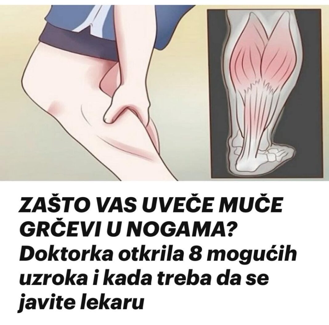 Mnogi se susreću sa grčevima u nogama tokom dana, a ovaj problem je znatno neorijatniji kada se javlja tokom noći. Obično traje od nekoliko sekundi do nekoliko minuta i praćen je oštrim, neprijatnim bolom. Mnogi se tada i uspaniče, jer osećaju bol koju ne mogu da spreče, što je posebno opasno ako se dešava dok su u vodi.